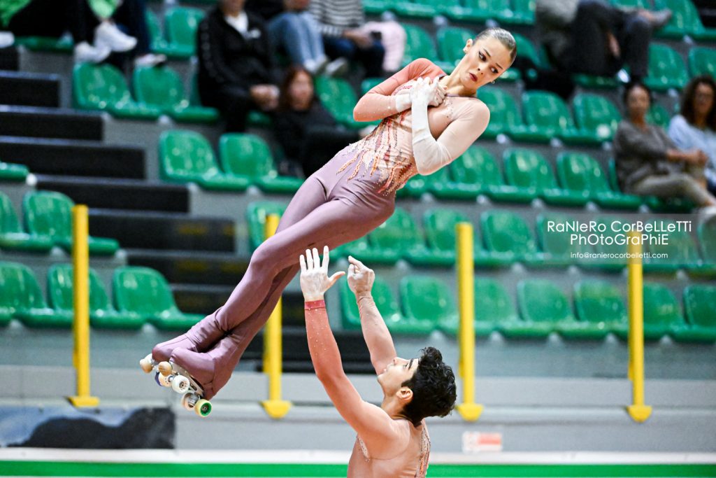 In pista le gerarchie sono state rispettate pienamente, in ragione del successo di Alice Piazzi e Alessandro Bozzini, argento lo scorso anno ad Andorra, ma anche campioni del mondo junior ad Asuncion nel 2021. Gli allievi della citata Zenobi e di Stella Giarola, sono apparsi decisamente in progresso rispetto ai Nazionali, dove avevano concluso al terzo posto: nonostante alcuni errori la coppia sembra in grado, per logica, non solo di salire sul podio in quel di Ibaguè, ma anche di lottare senza timori reverenziali con le altre coppie azzurre. Nel corto, sulle note di “I Feel Lonely”, brano del pianista-cantante Karl Hugo, noto per le sue collaborazioni con i pattinatori sul ghiaccio, Alice e Alessandro hanno pagato dazio nel doppio loop eseguito in parallelo, poiché Alice non ha completato la rotazione del suo salto, chiuso peraltro su due piedi.