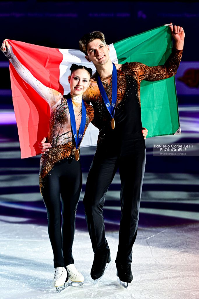 Passando alla disamina delle gare, va detto che in ordine cronologico il primo titolo assegnato è stato quello delle coppie di artistico, dove a trionfare è stata ancora una volta la scuola italiana della specialità, che in assenza dei russi si è confermata la più forte a livello europeo. A trionfare sono stati Lucrezia Beccari e Matteo Guarise, coppia formatasi all’inizio dell’estate 2022, a seguito del ritiro dalle competizioni di Nicole Della Monica, storica partner di Matteo.