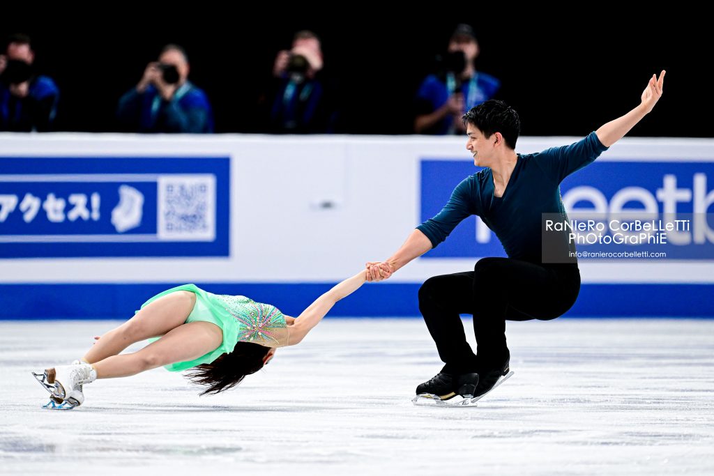 A precederli nel libero erano i campioni uscenti giapponesi Riku Miura/Ryuichi Kihara, allievi in Canada di Bruno Marcotte, ex-pattinatore di ottimo livello. Rientrati alle gare in sede di Four Continents, dopo un lungo periodo di stop a causa di un infortunio di Riku alla schiena, il duo nipponico si è aggiudicato il libero finale, cogliendo dunque la medaglia d’argento. Nel libero, pattinando su vecchi brani del cantautore statunitense Shawn Phillips, Riku atterrava sul quarto di rotazione il proprio triplo toeloop della sequenza con due doppi axel e completava solo doppio il previsto triplo salchow in parallelo, non pregiudicando tuttavia il successo parziale della coppia.