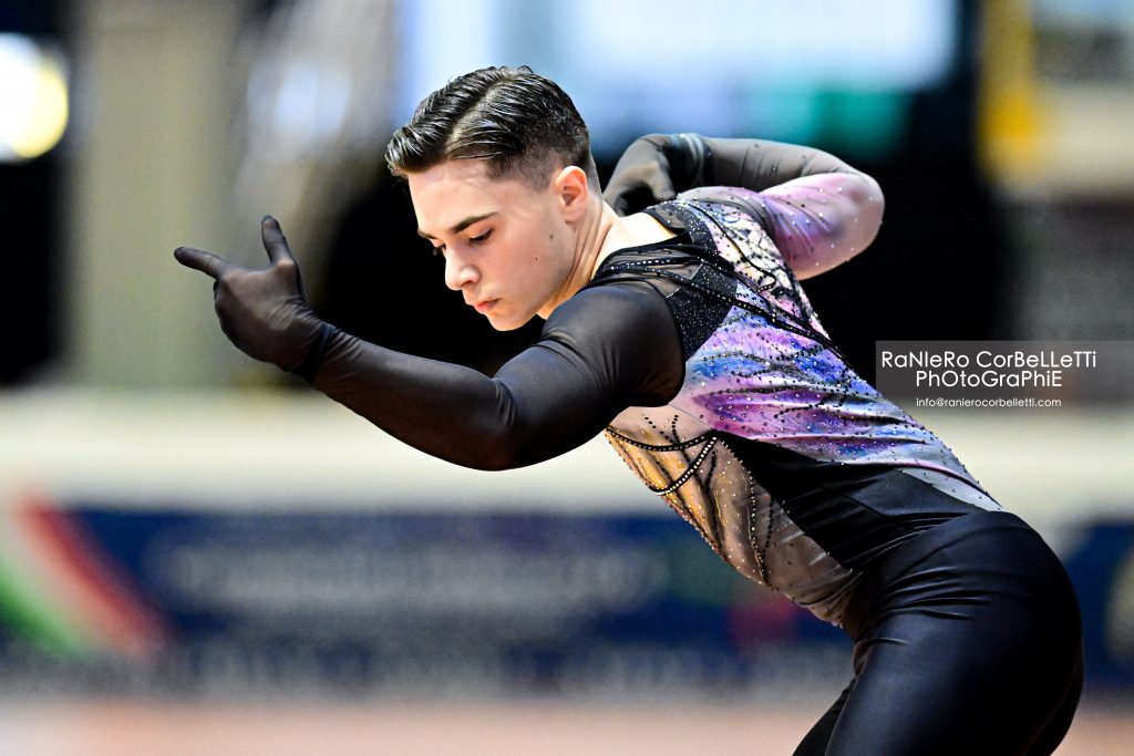 L’ultimo posto per i Mondiali è stato appannaggio di Alex Chimetto, terzo dopo essere stato secondo nello short. Il pattinatore veneto, secondo lo scorso anno e bronzo ai Mondiali junior del 2022, aveva ben impressionato nello short pattinato sulle musiche di “Amazonia” del grande Jean-Michel Jarre, allorchè aveva sì eseguito la combinazione triplo flip-triplo toeloop-triplo toeloop con step-out sull’ultimo salto, ma dove peraltro nella combo-spin non gli erano state riconosciute alcune posizioni. Nel libero su musiche di Power-Haus e di Alibi Music, pur pattinando un buon programma non riusciva a contenere la rimonta di Gelao: dopo un triplo loop e una combinazione triplo flip-triplo toeloop impeccabili, Alex sottoruotava il triplo salchow posto in conclusione della sequenza con il triplo flip e appoggiava la mano sull’arrivo del triplo lutz.