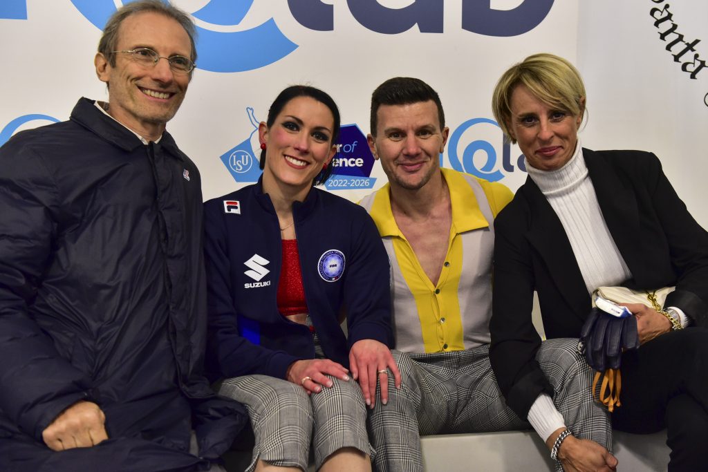 Nella foto Charlene Guignard/Marco Fabbri (ITA) con Roberto Pelizzola e Barbara Fusar Poli