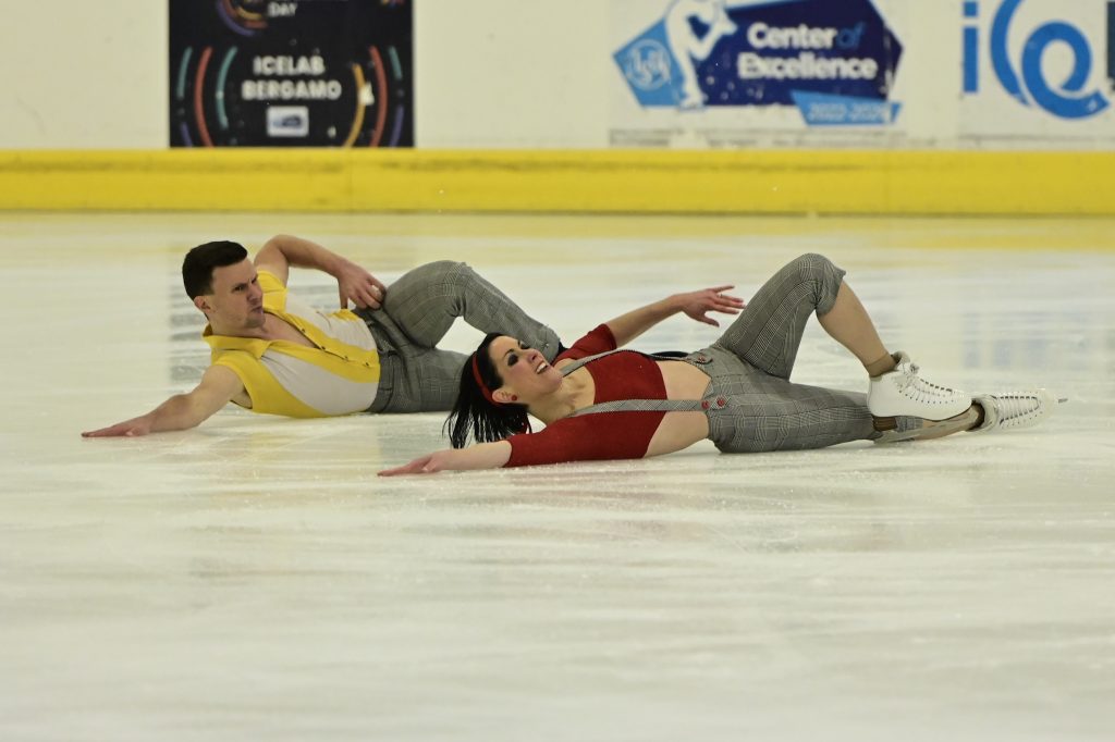 Alle loro spalle, decimi. si sono subito collocati i romani Giulia Paolino e Andrea Tuba, esordienti fra i seniores. Allenati tra Milano e Mentana da Valter Rizzo, Brunhilde Bianchi e Stefania De Luca, i due azzurri erano al rientro agonistico dopo una lunga sosta, causata da un grave infortunio patito da Andrea alla vigilia degli scorsi campionati italiani: molto bello è sembrato il loro libero, orchestrato sulle splendide note di “The Storm” di Havasi e dunque del tutto meritato è stato il loro piazzamento. Positiva è stata anche la prova di Carlotta Argentieri e Francesco Riva, coppia allenata da Luca Lanotte, ex-campione del mondo e d’Europa con Anna Cappellini: la giovane coppia ha chiuso undicesima, distinguendosi in particolare per una bella rhythm dance sulle note degli Abba.