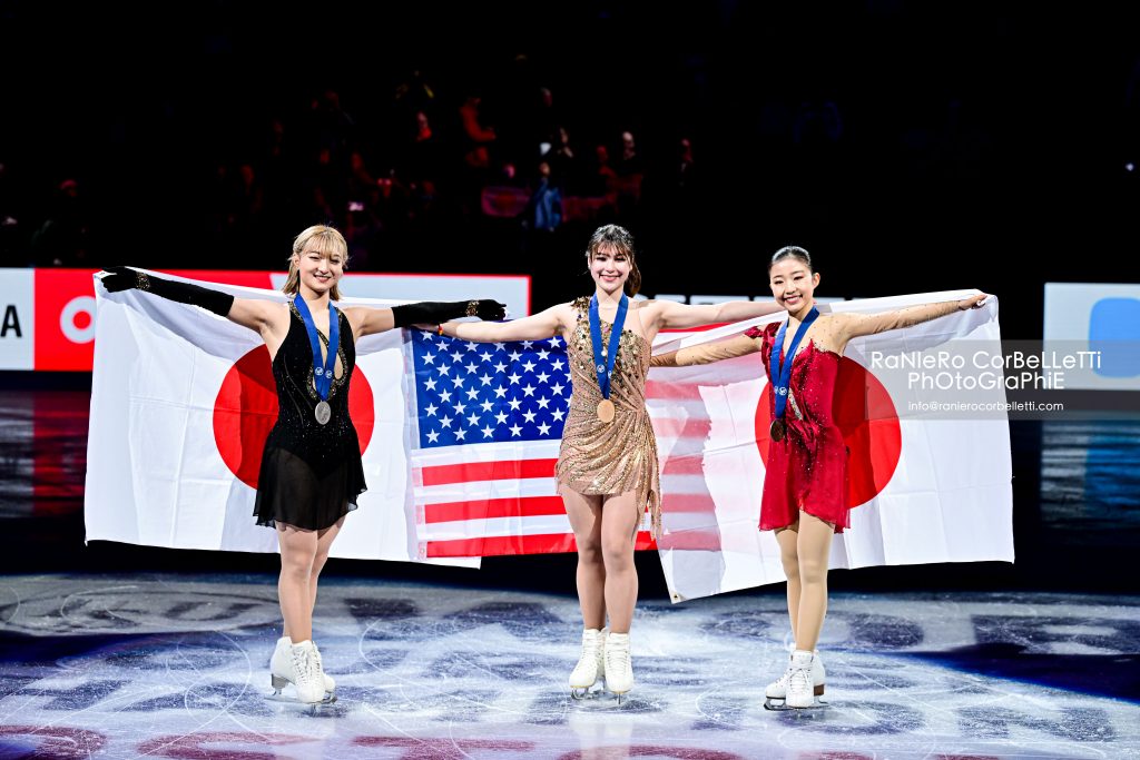 Nella foto Kaori Sakamoto (JPN), Alysa Liu (USA) e Mone Chiba (JPN)