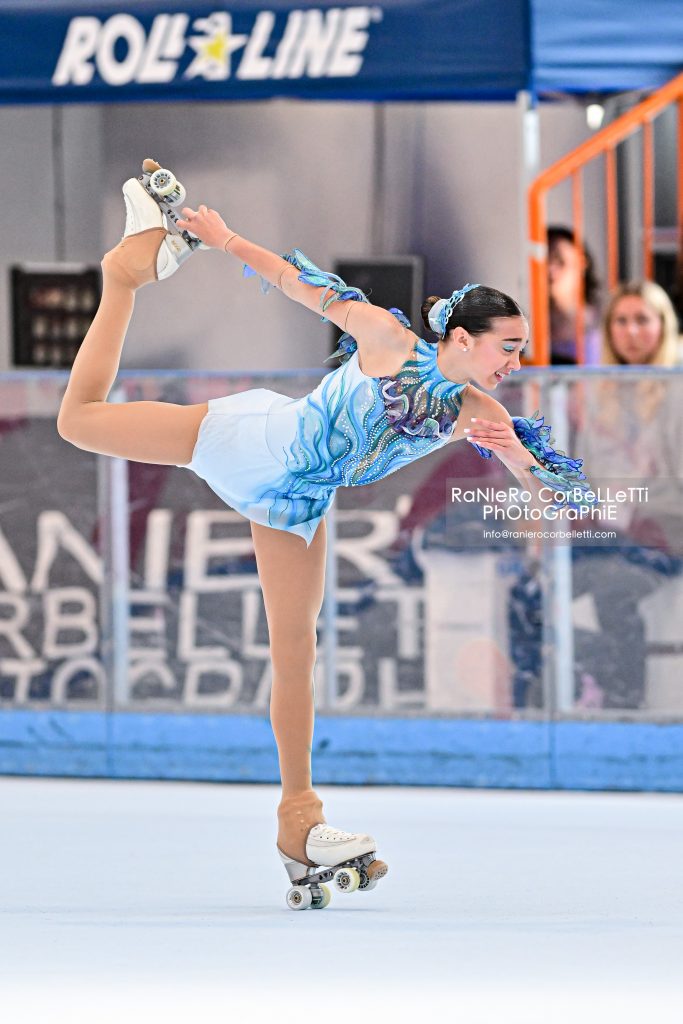 La grande protagonista della competizione italiana è stata certamente Madalena Costa, il grande talento del rotellismo mondiale, che nell’occasione, alla prima uscita stagionale, ha ritoccato tutti i primati del mondo femminili, facendo meglio, lei ancora junior, non solo del giovane fuoriclasse spagnolo Guillermo Gomez, ma anche dei vincitori delle prove individuali seniores. Madalena, classe 2008 (compirà i 17 anni nel prossimo ottobre, ndr), ha incantato pubblico e addetti ai lavori, mostrando di aver ulteriormente migliorato le sue prestazioni, sia dal punto di vista tecnico, sia dal punto di vista coreografico. A tale proposito la scelta operata dalla madre-allenatrice Sheila Rodrigues di avvalersi delle coreografie del grande Sandro Guerra si è rivelata vincente, poiché i programmi preparati per lei dall’ex-pattinatore triestino sono risultati due veri gioielli. Nello short, basato sulle note della famosa “Danza delle Ore”, tratta dall’opera “La Gioconda” del compositore cremonese Amilcare Ponchielli, Madalena è stata eccezionale: indossando un vero e proprio tutù da danzatrice classica, che ai più ha ricordato il costume molto simile di Alina Zagitova nel suo libero vincente alle Olimpiadi di PyeongChang del 2018, ha esordito con una splendida combinazione triplo flip-triplo toeloop-doppio loop, per poi proseguire con una sequenza di passi di livello tre, un triplo lutz, un doppio axel preso da posizione d’entrata molto difficile e una combo spin finale, chiusa in posizione Bielmann. Meritatissimo è parso dunque il 95.63 di parziale, ormai non lontano dal primato mondiale maschile di Pau Garcia. Nel libero Sandro Guerra ha sviluppato un tema particolarmente calzante per una ragazza proveniente dalle Azzorre, ovvero quello della “perla dell’oceano Atlantico”, utilizzando come suo solito brani originali e raffinati, come quelli realizzati dalla soprano britannica Grace Davidson, insieme a due validi compositori quali Huw Watkins e Michael Levine. La Costa è stata splendida realizzando una serie di salti davvero inusuale in gara di rotelle: dopo il doppio axel iniziale, ha proseguito con un triplo loop, la combinazione triplo flip-triplo toeloop, la combinazione triplo lutz-triplo toeloop, per chiudere con un triplo lutz e un triplo salchow. Anche in questo segmento inevitabile è stato il record del mondo, nell’occasione fissato a uno strabiliante 159.38, un punteggio da solo superiore a quello che la seconda classificata, la connazionale Rita Azinheira, ha ottenuto nel complesso dei due segmenti di gara. Da segnalare il bronzo dell’olandese Quinty Van Lare, a testimonianza di un lento ma significativo allargamento del quadro delle nazioni partecipanti con successo alle gare internazionali di rotelle.