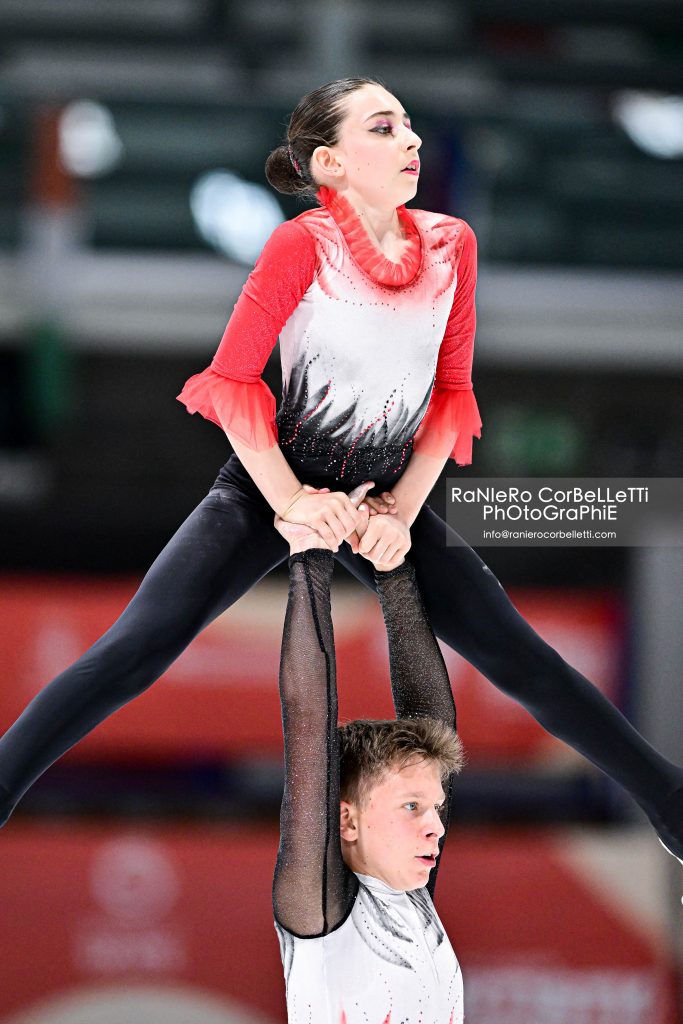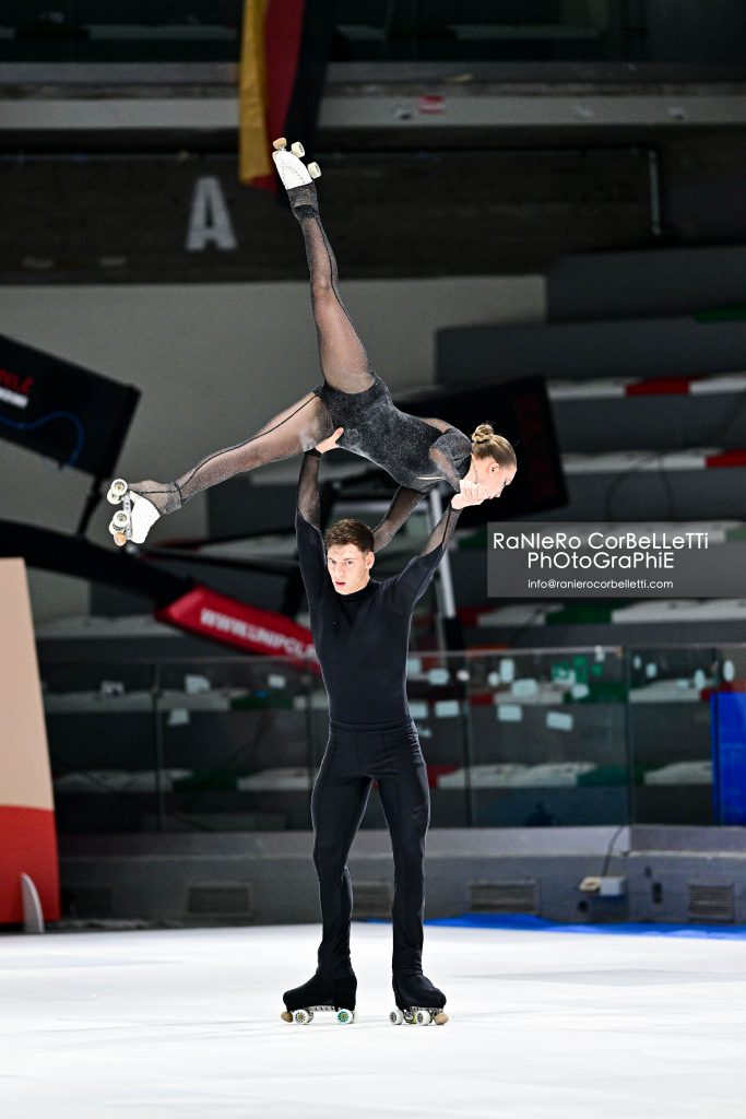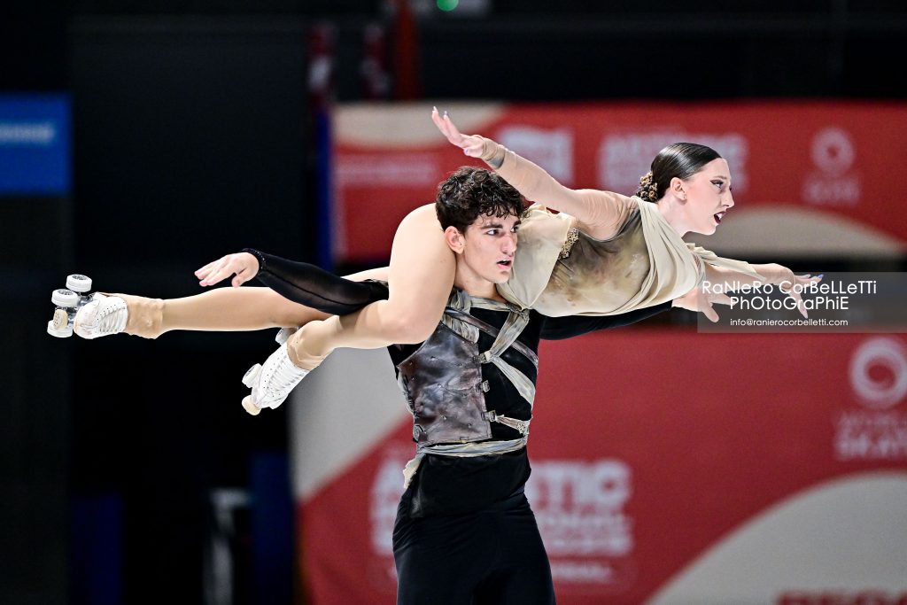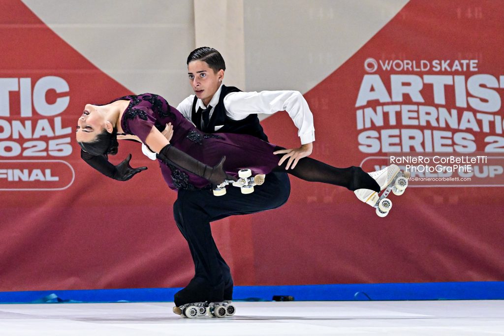 L’Italia ha comunque dominato le prove di coppia: in quelle di artistico si è imposta quella formata da Alice Pozzobon/Alessio Cocci, campioni italiani novices di pattinaggio su ghiaccio. I due brillanti pattinatori di Anguillara hanno superato in entrambi i segmenti del programma la coppia emiliano-romagnola formata da Ginevra Riccardo/Rodolfo Cortini e quella bolognese di Ludovica Pari/Noah Cavallini, in una gara che ha visto solo due coppie straniere in gara, peraltro con qualità tecnica molto inferiore a quella delle coppie azzurre.