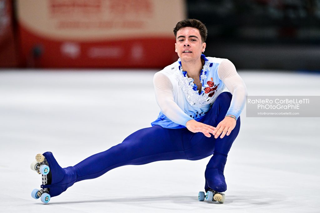 Se in campo femminile si è assistito a un monologo, in quello maschile si è stati testimoni di un duello “all’ultimo punto” fra i due spagnoli in gara, il fuoriclasse Guillermo Gomez, campione del mondo junior in carica e il campione europeo junior in carica Unai Cereijo, madrileno il primo, galiziano il secondo. Il loro è stato un confronto ad altissimo livello, nel quale inizialmente, nello short, ha prevalso Cereijo, perfetto nella sua interpretazione della nota “Suite Espanola” e nello specifico del brano denominato “Asturias” del compositore Isaac Albeniz: dopo il doppio axel iniziale, proseguiva con la combinazione triplo loop-loop-triplo loop-doppio toeloop e con il triplo lutz. Peccato solamente per una sequenza di passi solo di livello uno, a sigillare un programma da oltre 87 punti, utile a mettere pressione su Gomez.