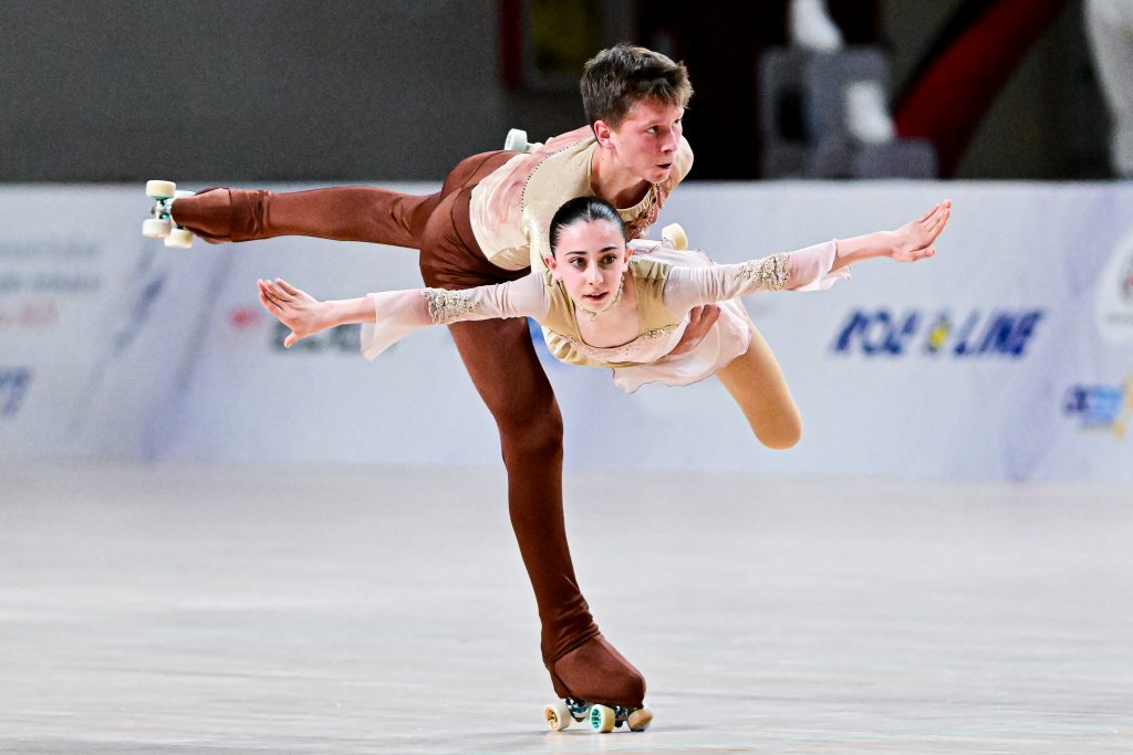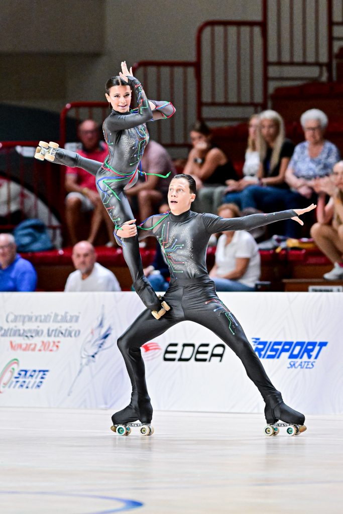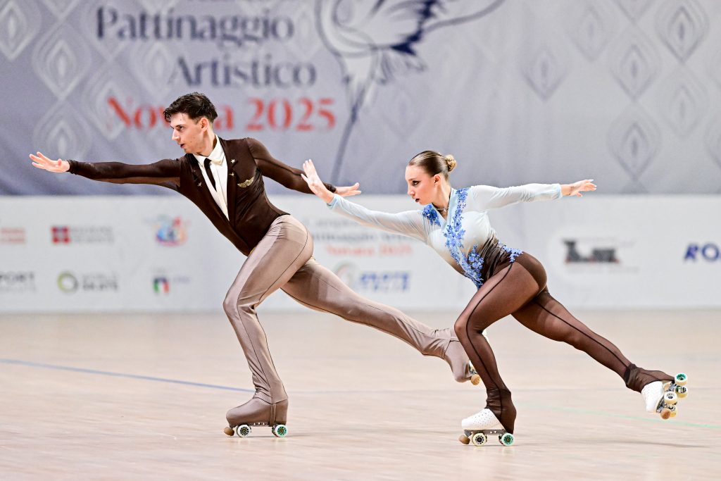 Molto combattuta è stata anche la gara delle coppie che ha premiato il collaudato binomio di Anguillara Alice Pozzobon/Alessio Cocci, già campioni d’Italia novice sul ghiaccio: la coppia laziale, allenata da Valeria Fabiani, mamma della grande Gioia Fiori, ha preceduto non senza patemi gli emiliano-romagnoli Ginevra Riccardo/Rodolfo Cortini e i bolognesi Ludovica Pari/Noah Cavallini, proponendosi dunque, sulla scorta dei successi nelle Series come logici favoriti nella corsa al titolo mondiale.