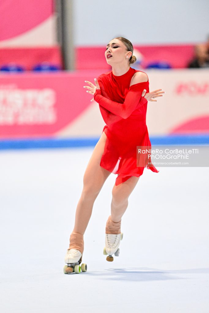 Il terzo posto era invece con parziale sorpresa di Giada Romiti che su brani spagnoli, uno dei quali di Estrella Morente, completava la combinazione triplo toeloop-doppio toeloop-euler-triplo salchow, il triplo toeloop e il doppio axel, riuscendo così a superare la quotata spagnola Sira Bella, che su ritmi di blues, pattinava con alcune imprecisioni, configuratesi in particolare nell’atterraggio non sicuro dei salti della sua combinazione triplo toeloop-euler-triplo salchow-doppio toeloop, peraltro interi nella loro rotazione.