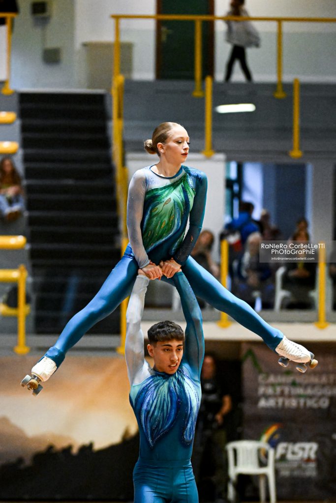 1. Anna Serafini/Manuel Cioni (Magic Roller Ozzano BO/Pol. Pontevecchio Bologna) 129.06 (2/49.68-1/79.38), 2. Anna Giulia Calabrese/Lorenzo Tommasi (S.Domenico Savio Lecce) 125.06 (1/52.35-4/72.71), 3. Matilde Matteucci/Josè Enrico Inglese (Rinascita Sport-Life Rimini) 117.95 (3/42.27-2/75.68), 4. Ilaria Mattioli/Manuel Rossi (PA S.Mariano/Pol. Funo BO) 107.85 (5/34.45-3/73.40), 5. Gloria Di Bella/Pietro Alinari (Pol. Pontedera/TM Roller Academy S.Agata Bolognese BO) 93.77 (4/34.85-7/58.92), 6. Nicole Sormanti/Giacomo Ricci (Talents Skating Palestrina/Ponte di Nona Roma) 92.85 (6/30.83-5/62.02), 7. Aurora Gastini/Daniele Ricci (Roman Sport City Pomezia/Ponte di Nona Roma) 83.63 (7/24.29-6/59.34).