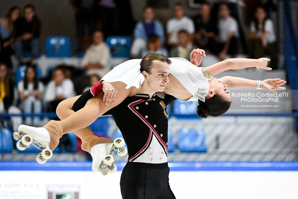 1. Elisa Cavina/Yuri Allegranti (Pol. Funo BO/Pol. Orizon BO) 91.91 (1/33.85-1/58.06), 2. Diana Valente/Valerio Paoletti (Frascati SC) 76.21 (2/33.10-3/43.11), 3. Chiara Chemello/Cristian Poli (Gruppo Sarcedo) 71.13 (3/26.59-2/44.54), 4. Sofia Digani/Dante Orlandini (US Invicta Skate Modena/Gualtieri 2000) 63.81 (4/24.81-4/39.00), 5. Isabel Ghisleri/Christian Ghisleri (PA Gardalago) 56.30 (5/21.10-5/35.20).